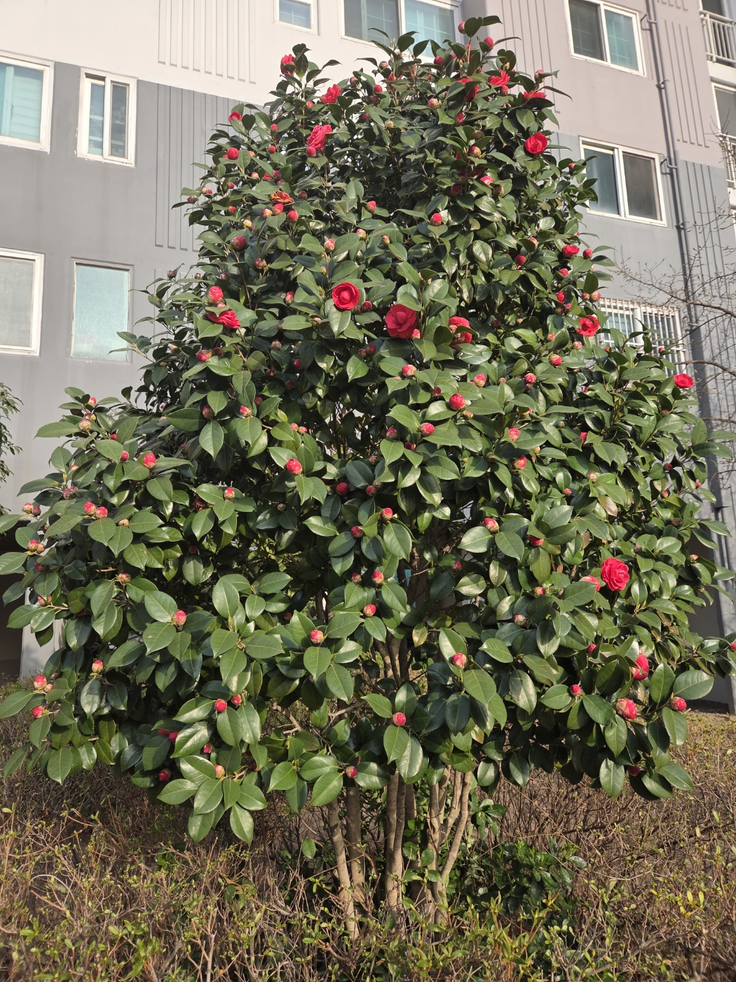 부산 기장에 아버지 뵈러 왔습니다. 잠시 시간을 내어 아파트를 둘러 보니 벌써 봄이 성큼 다가왔습니다. 목련이 활짝 피었고 동백도 꽃망울을 터트렸습니다.